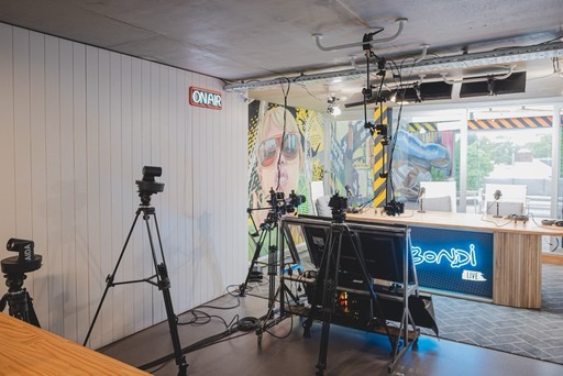 Yanina Latorre, Ángel De Brito y Beto Casella presentaron sus programas dentro de los estudios de Bondi Live, ubicados en el cuarto piso de la productora de Palermo.