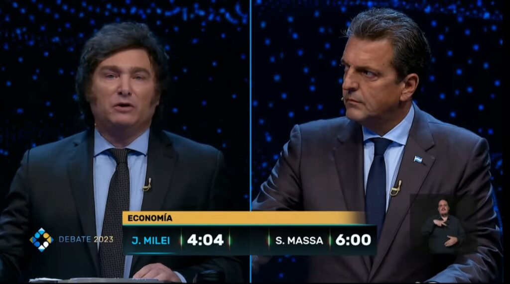 En la Facultad de Derecho, un escenario tenso y lleno de expectativas se desarrolló este domingo cuando los candidatos presidenciales Sergio Massa y Javier Milei se enfrentaron en un apasionante debate, marcando el cierre de sus campañas rumbo al balotaje del próximo 19 de noviembre.
