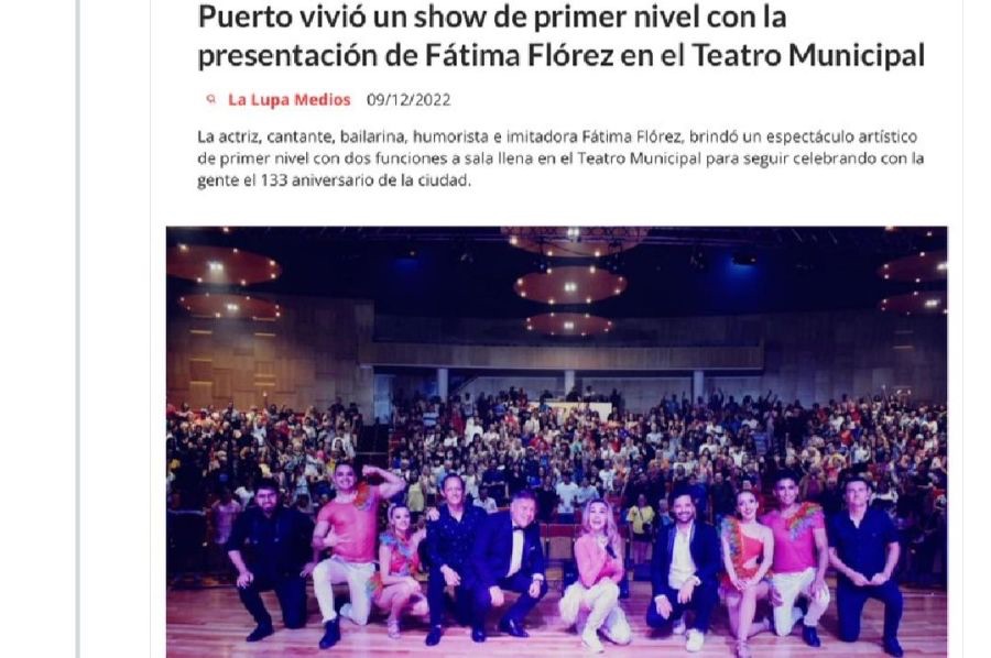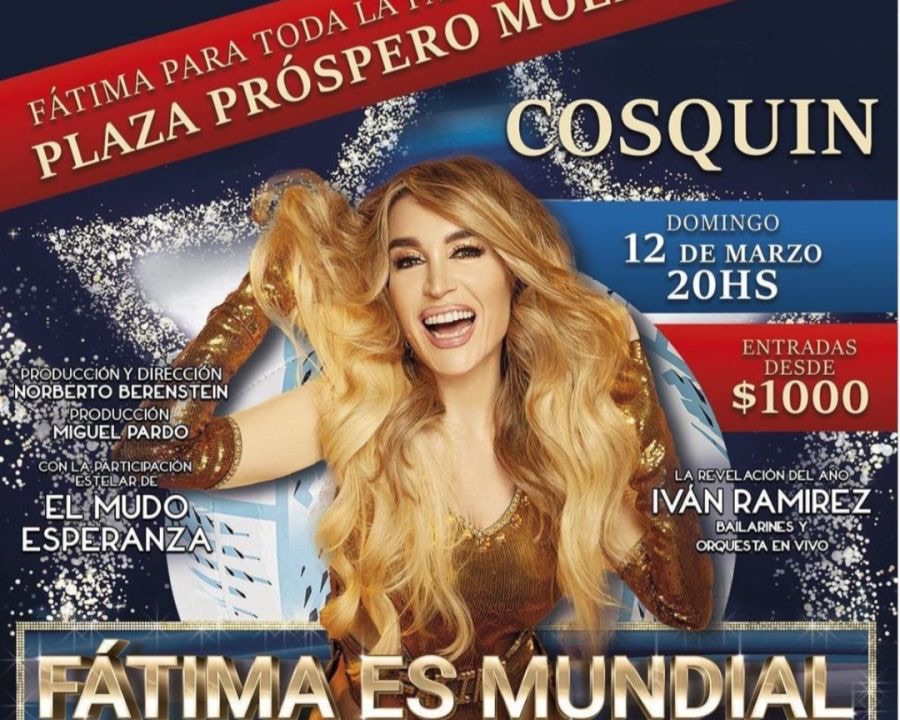 Fátima Florez también se presentó en la ciudad cordobesa de Cosquín, ofreciendo su show «Fátima es Mundial» en la Plaza Prospero Molina. Estos eventos, con diferentes fechas y valores de pago, forman parte de la agenda artística de Fátima Florez, al igual que de Lali Espósito.