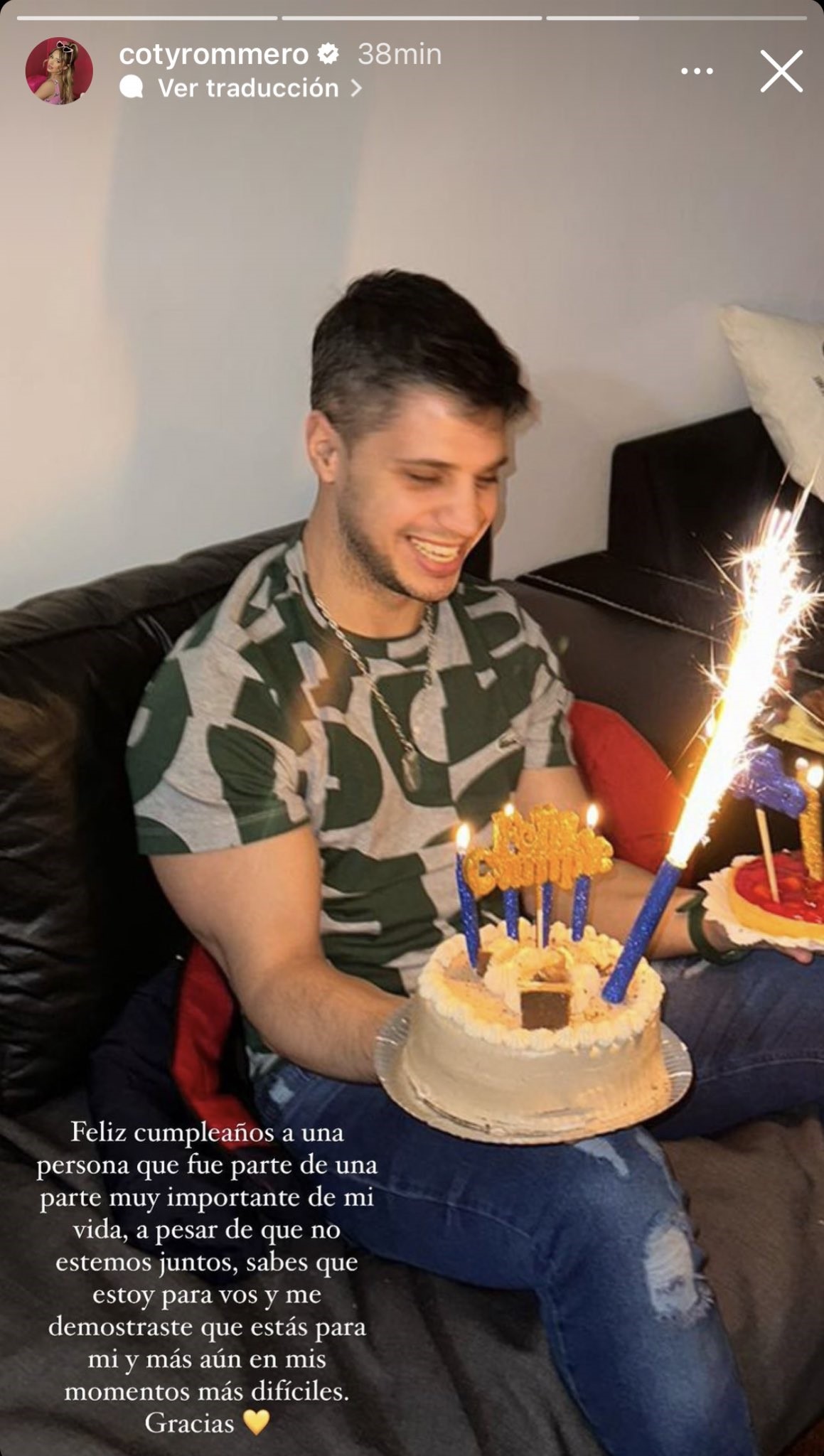 En su conmovedor mensaje, Coti compartió en su historia de Instagram: «Feliz cumpleaños a una persona que fue parte de una etapa muy importante de mi vida. A pesar de que ya no estemos juntos, sabes que estoy aquí para ti y me has demostrado que estás aquí para mí, especialmente en mis momentos más difíciles. Gracias».