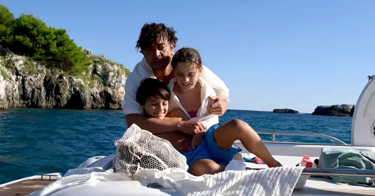 Pietro y sus hijos, de paseo en lancha. A la noche, los niños se esfuman. Fotos NetflixNo, no habían desaparecido, sino que fueron secuestrados.