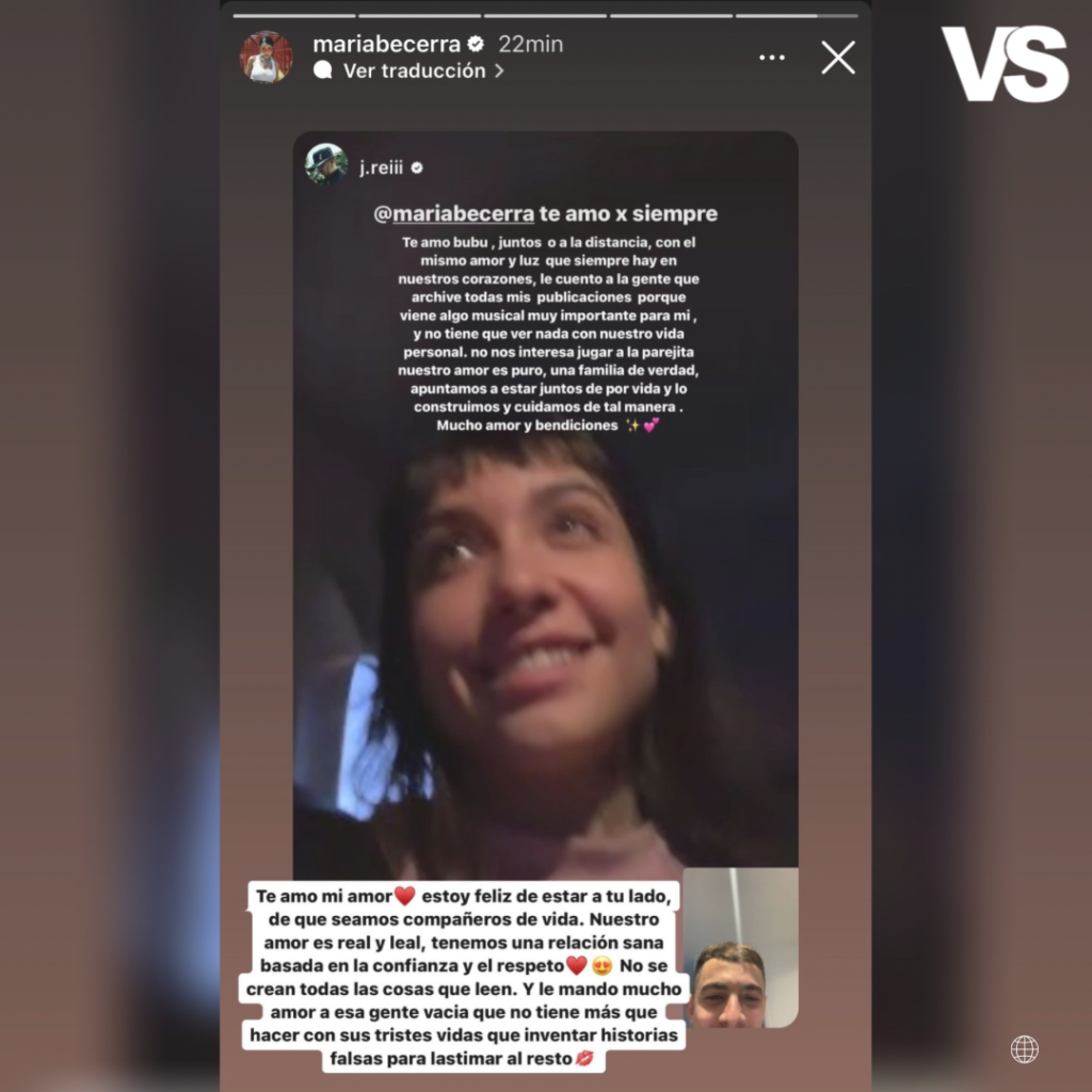 J Rei publicó: “@mariabecerra te amo x siempre. Te amo bubu, juntos o a la distancia, con el mismo amor y luz que siempre hay en nuestros corazones, le cuento a la gente que archive todas mis publicaciones porque viene algo musical muy importante para mi, y no tiene que ver nada con nuestro vida personal. no nos interesa jugar a la parejita nuestro amor es puro, una familia de verdad, apuntamos a estar juntos de por vida y lo construimos y cuidamos de tal manera. Mucho amor y bendiciones”.