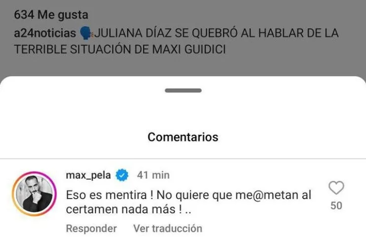 El emotivo discurso de Díaz conmovió a muchos en las redes sociales, pero poco después, Maxi Guidici respondió de manera tajante a través de su cuenta de Instagram, acusando a su expareja de falsa: «¡Eso es mentira! No quiere que me metan al certamen nada más», escribió.