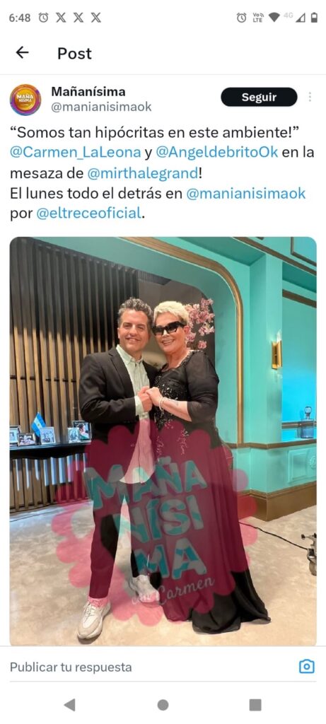 Carmen, como respuesta, amenazó con iniciar acciones legales contra la esposa de Diego Latorre y expresó su profunda decepción por la falta de apoyo de Angel de Brito, a quien consideraba debía haberla defendido de los ataques de Yanina.